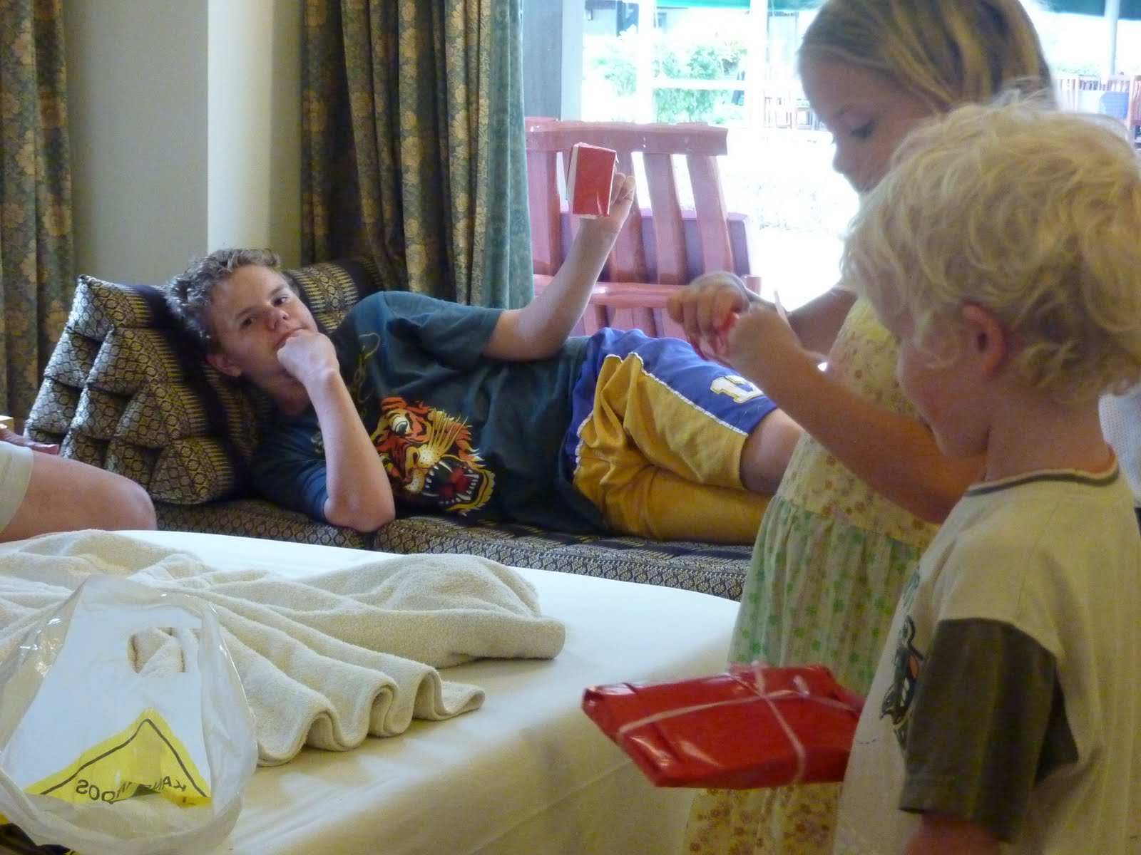 På eftermiddagen badade vi i poolen på deras hotell Golden Bay Cottage som vi verkligen kan rekommendera. Mycket lugnare än vid våra pooler.